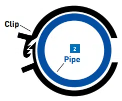 - Spread apart the 2 arms of the clip and insert the pipe.