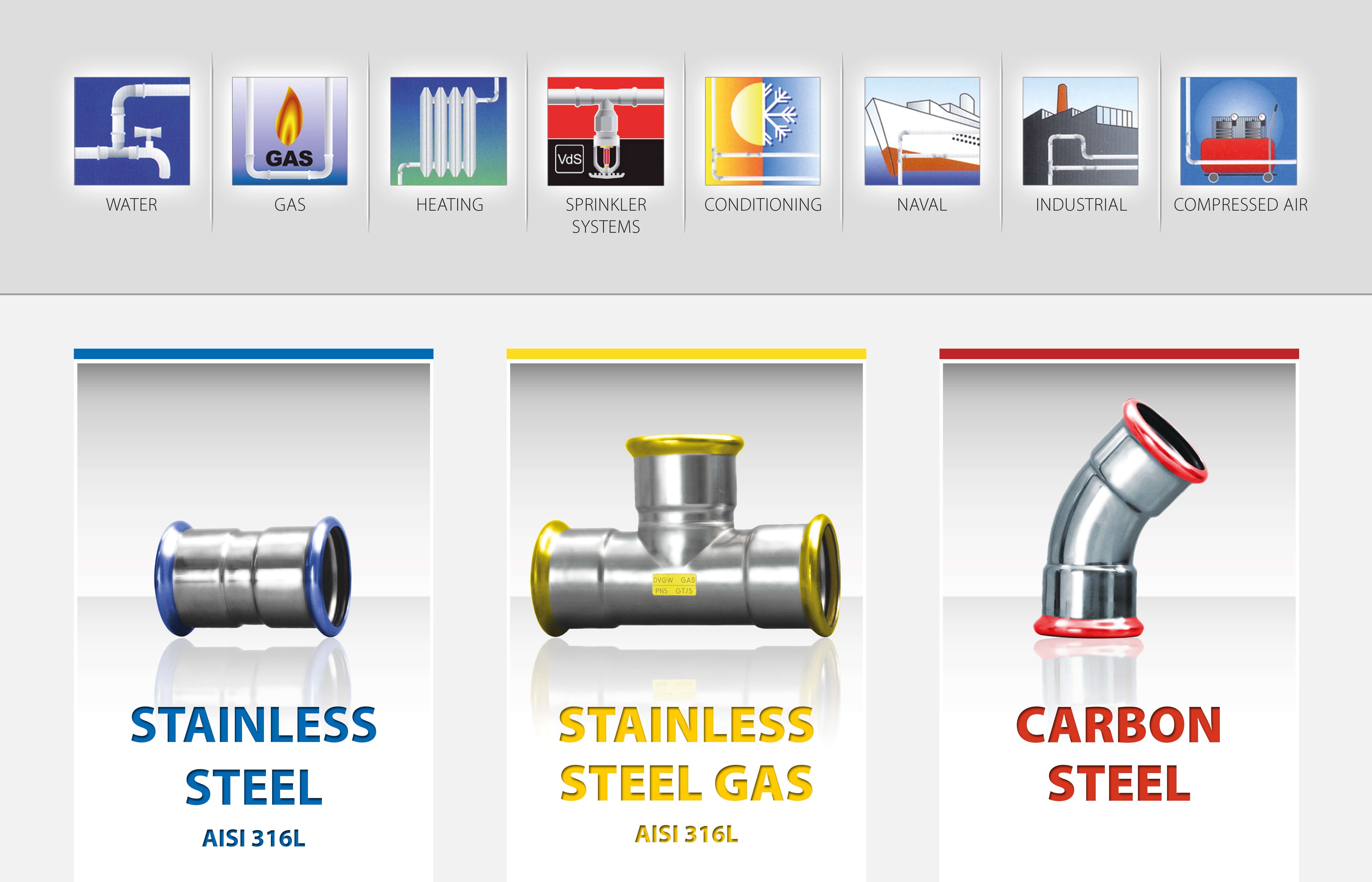 Explore our full range of products, including pressfit stainless steel pipe fittings and carbon steel fittings for our Sydney customers.